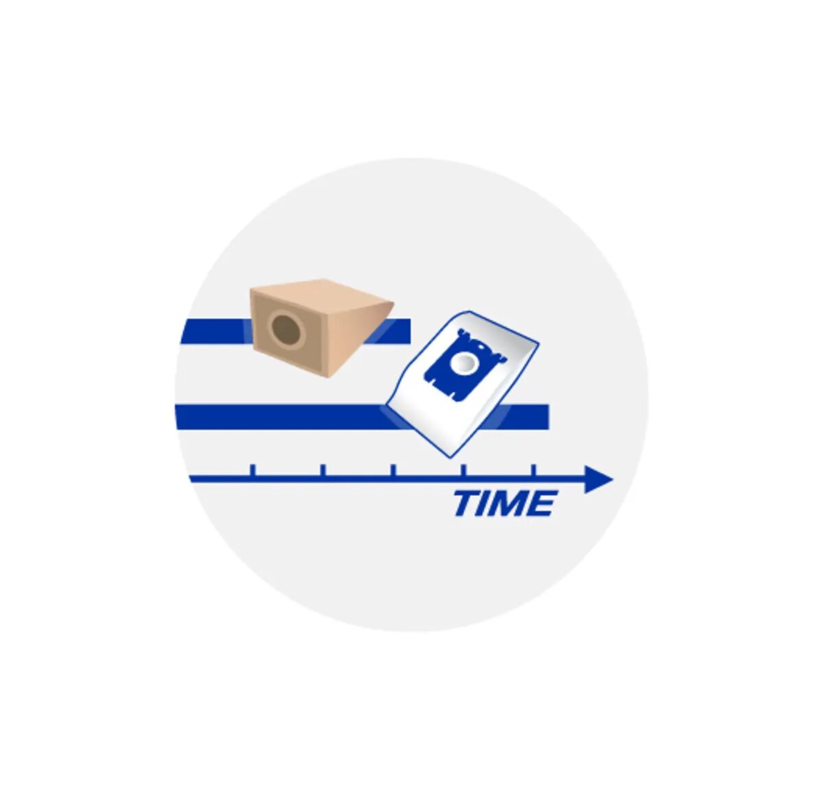 Syntetiske DURAFLOW™ Fresh-støvposer har opptil 50% lenger brukstid enn normale støvposer av papir. Dette er på grunn av strukturen på materialet som gir posen forbedret kapasitet til å holde på støv og samtidig muliggjør konstant høy sugekraft mens posen fylles opp.