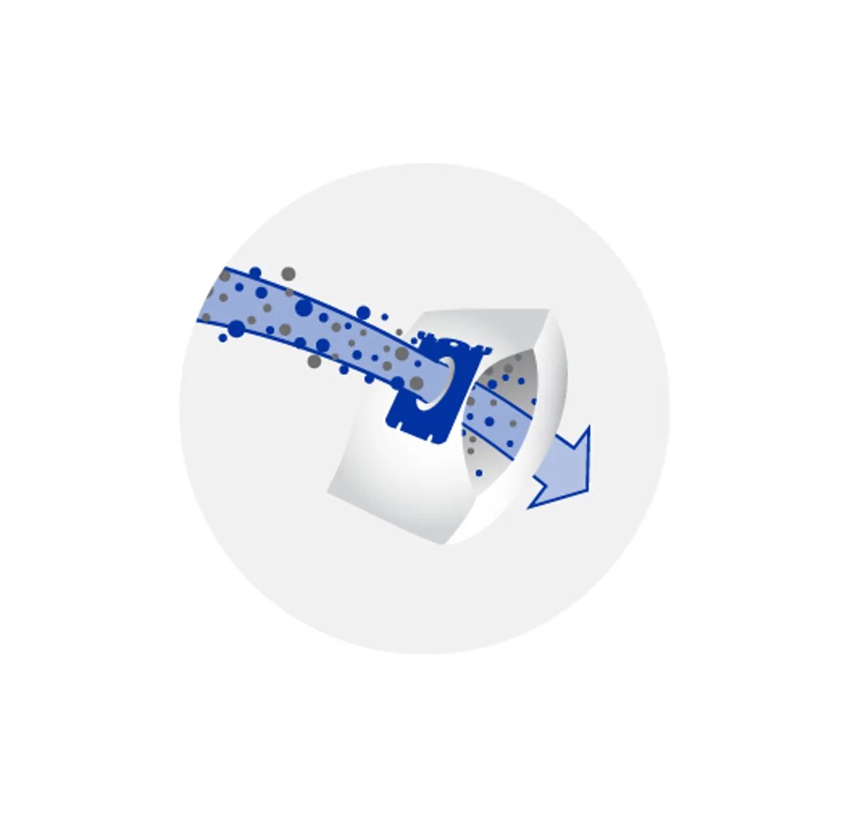 Takket være banebrytende teknologi og ingeniørvitenskap forhindrer det dårlig lukt i hjemmet ditt under og etter rengjøring. Det muliggjør lenger brukstid og bidrar til å opprettholde høy sugeeffekt til støvposen er full. DURAFLOW™ Fresh-materiale garanterer et høyt nivå av filtrering og sikrer et sunnere hjemmemiljø.